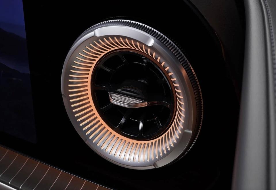 外观方面,新车延续奔驰最新纯电设计语言,核心亮点是前脸设计灵感源自经典车型300 SEL6.3的标志性大尺寸格栅,传承品牌百年设计底蕴的同时融入电动化创新,格栅内部镶嵌942颗可独立点亮的聚碳酸酯背光颗粒,搭配可发光三叉星徽标,解锁时可呈现动态迎宾动画,辨识度拉满。两侧LED大灯组采用熏黑处理,内部融入星徽元素,日间行车灯点亮后呈现灵动的三叉星造型,与格栅呼应。