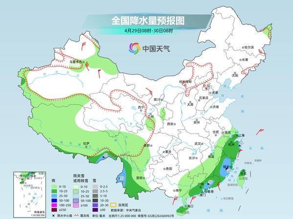 受频繁强降雨影响,今明两天湖南、江西、湖北、广东、广西、云南等地部分地区山洪、中小河流洪水、城乡积涝等次生灾害风险较高,需加强防范。五一假期将至,假期期间南方大部依然多雨,建议公众关注出发地和目的地预报预警信息,提前规划行程,注意出行出游安全。
